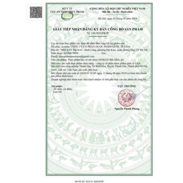 (Chính Hãng) Ginkgo biloba 240mg bổ não tăng cường tuần hoàn máu hiệu quả hộp 100 viên, sản phẩm chất lượng, đảm bảo an toàn sức khỏe người sử dụng, cam kết hàng giống hình