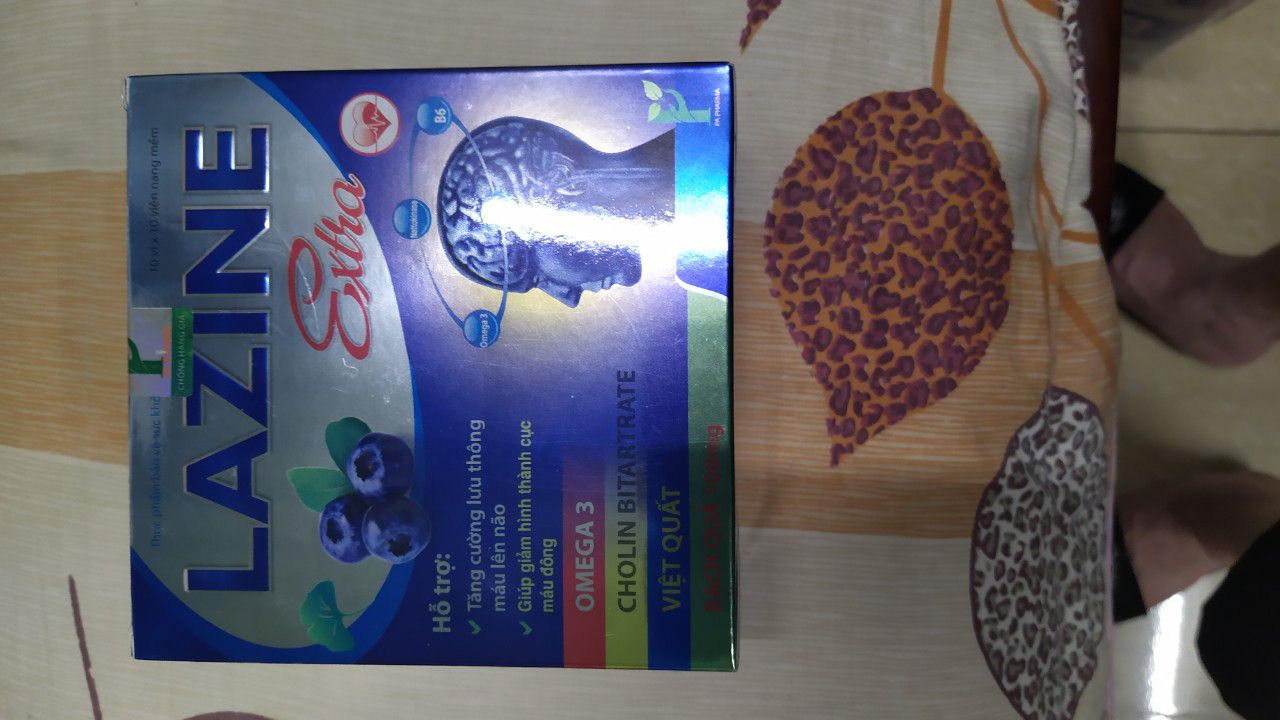 Phụ liệu: Dầu đậu nành, sáp ong, lecithin, glycerin,nipagin, nipasol, vanillin, màu thực phẩm vđ 1 viên.Công dụng sản phẩm Hoạt huyết dưỡng não Lazine Extra, Lazine Extra tăng cường lưu thông máu não:– Lazine Extra giúp làm giảm và cải thiện thiểu năng tuần hoàn máu não, đau đầu, đau nữa đầu, hoa mắt chóng mặt, ù tai, đau mỏi vai gáy, thiếu máu não, suy giảm trí nhớ.– Thực phẩm chức năng bổ não Lazine Extra hỗ trợ phòng ngừa và làm giảm các di chứng sau tai biến mạch máu não bảo vệ và tăng cường hoạt động của não– Bổ huyết dưỡng não Lazine Extra giúp bồi bổ khí huyết, hoạt huyết dưỡng não– Viên uống bổ huyết dưỡng não Lazine Extra giúp giảm căng thẳng, mệt mỏi– Lazine Extra bổ huyết dưỡng não giúp tăng cường thị lực.Đối tượng sử dụng sản phẩm Hoạt huyết dưỡng não Lazine Extra, Lazine Extra tăng cường lưu thông máu não– Người đau đầu, hoa mắt, chóng mặt, ù tai, mất thăng bằng do thiểu năng tuần hoàn não– Người suy giảm trí nhớ, mất tập trung, hay quên nên uống lazine extra.– Viên uống lazine extra phù hợp cho người lao động trí óc căng thẳng, suy nhược thần kinh.– Người bị ảnh hưởng sau tai biến và chấn thương sọ não nên dùng tpcn bo nao lazine.Cách dùng sản phẩm Hoạt huyết dưỡng não Lazine Extra, Lazine Extra tăng cường lưu thông máu não:– Giảm căng thẳng, stress: Uống vào buổi sàng, ngày 1 lần, mỗi lần 1 ống. Uống liên tục trong 2 tuần, hoặc có thể kéo dài tùy theo tình trạng bệnh.– Phòng ngừa các bệnh tai biến mạch máu não, suy giảm trí nhớ: Uống vào buổi sáng, ngày 1 lần. Uống liên tục từ 6 đến 8 tuần.– Có thể hòa nước, hoặc nước trái cây để dễ sử dụng.