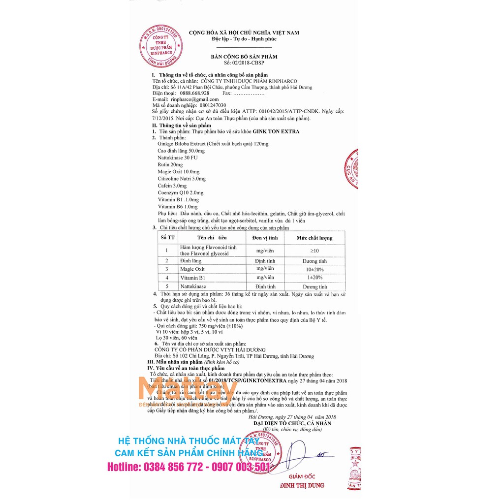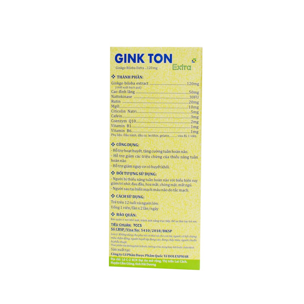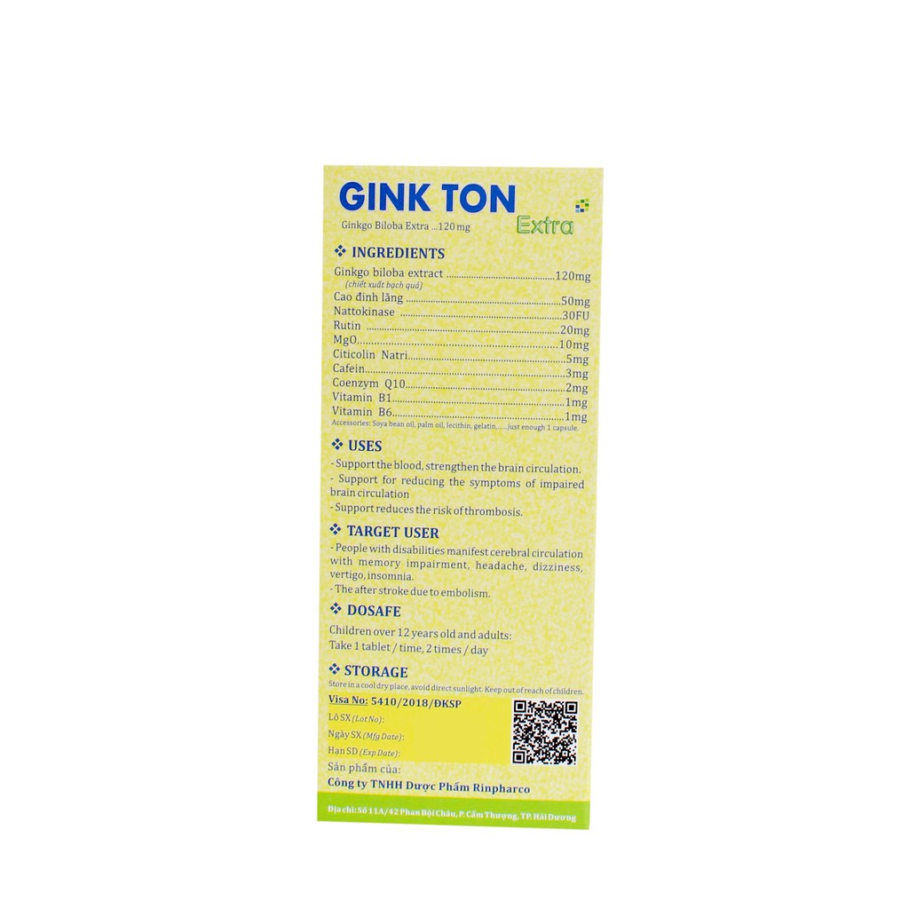 Gink Ton Extra - Rin Pharco - Chai 30 Viên - Tăng Cường Tuần Hoàn Não