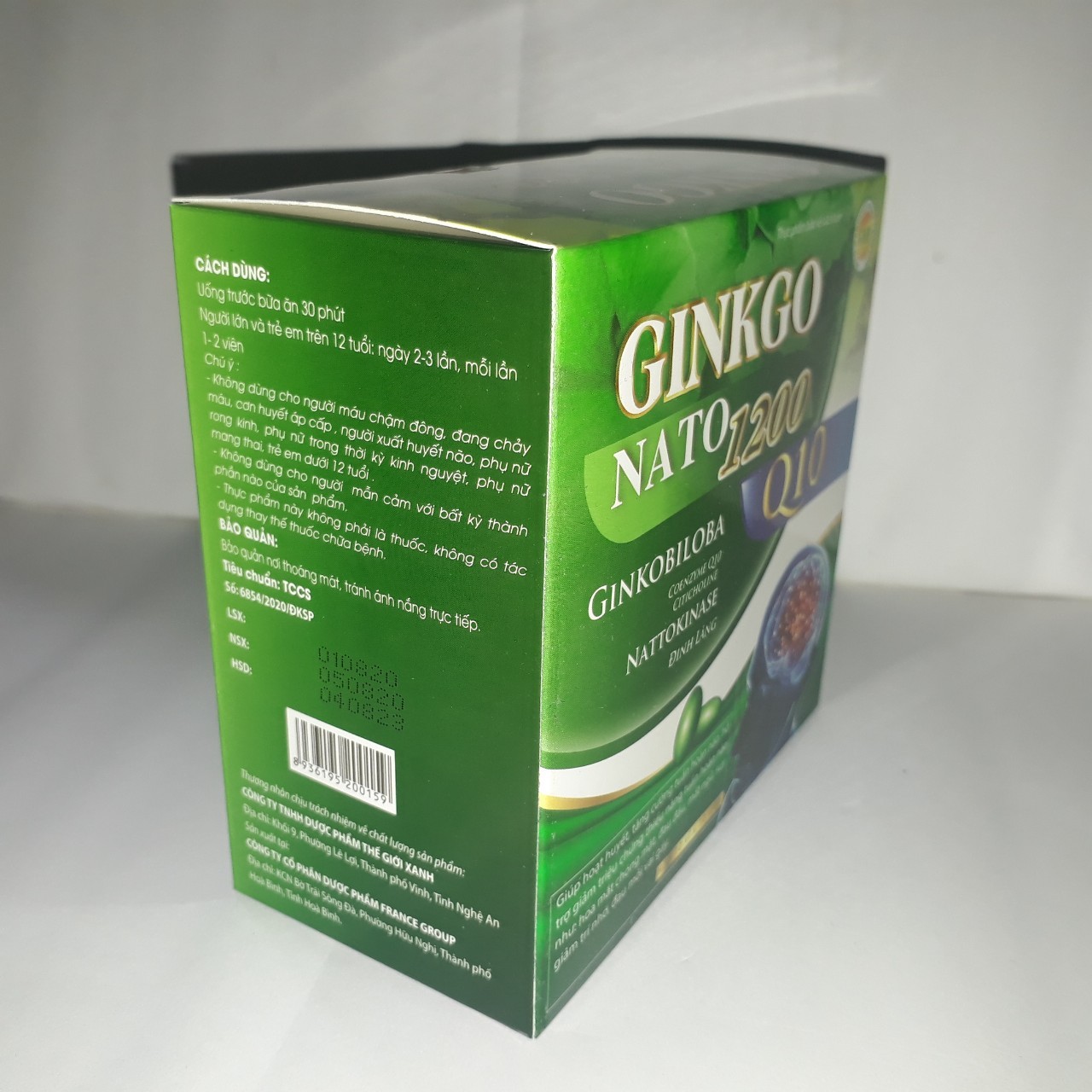VIên uống bổ não Ginko Natto 1200mg - France Group - Giúp tăng cường lưu thông máu não, hỗ trợ giảm di chứng sau tai biến mạch máu não- Hộp 100 viên