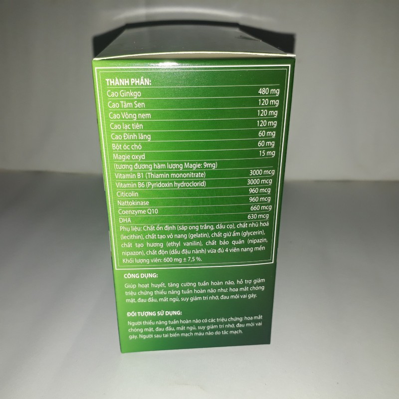- Thành phần Ginkgo biloba cao đến 360 mg