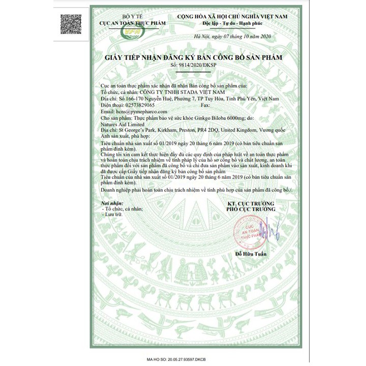 Viên Uống Natures Aid Ginkgo Biloba (Hộp 90 Viên) - Tăng Cường Trí Nhớ Và Tuần Hoàn Não 1. QUY CÁCH:Hộp 90 viên 2. THÀNH PH�� 275.000đ