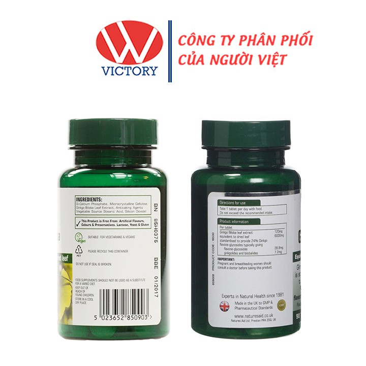 Viên Uống Natures Aid Ginkgo Biloba (Hộp 90 Viên) - Tăng Cường Trí Nhớ Và Tuần Hoàn Não - Victory Pharmacy