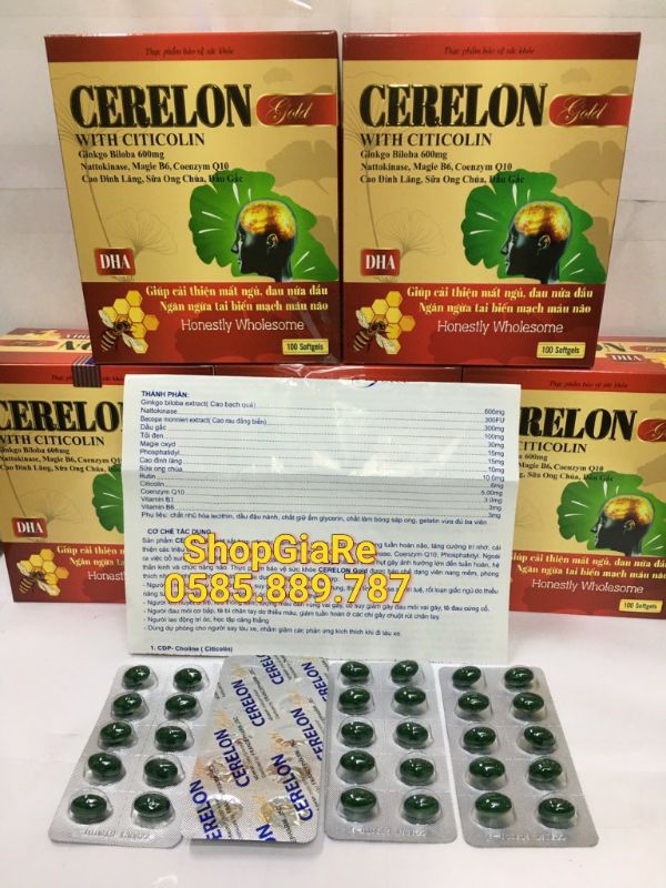Cerelon Gold Giúp Bổ Sung Dưỡng Chất Cho Não Hiệu Quả Viên Uống Hoạt Huyết Dưỡng Giảm Đau Đầu Chóng Mặt Não 100 Viên