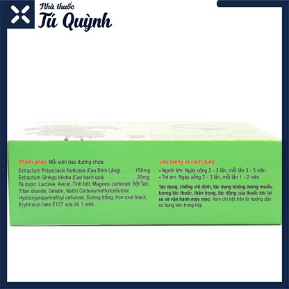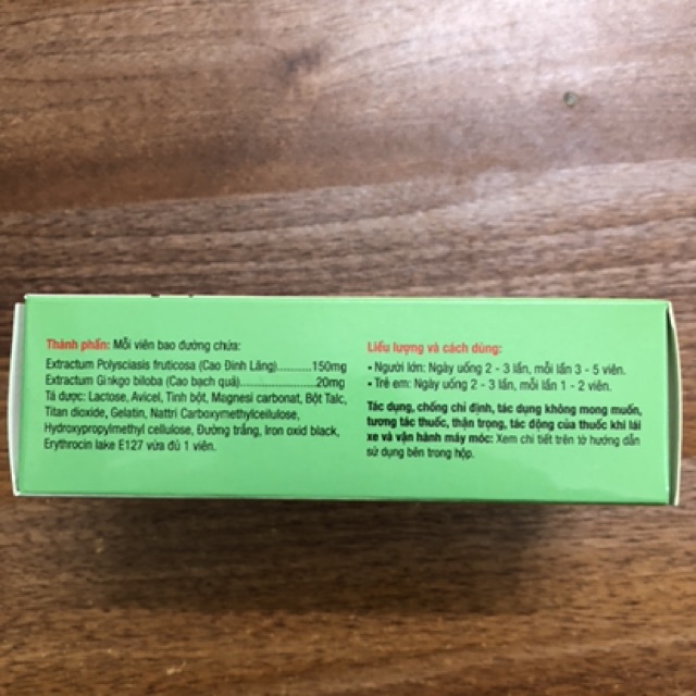 Dưới Đây Là Thông Tin Sp:1. Thanh Phan Hoat Huyet Duong Nao Pv Cao Đinh Lang: 150 Mg Cao Bách Quả :20 Mg Ta Duoc Vua Du 2. Cong Dung: . Thiêu Nang Tuan Hoan Nao. Suy Giam Tri Nho, Cang Thang Than Kinh, Kem Tap Trung. Roi Loan Tien Đinh Đau Đau Hoa Mat Chong Mat, Mat Ngu . Giam Tri Nho Suy Nhuoc Than Kinh 3. Cach Su Dung Nguoi Lon Ngay Uong 2 Lan Moi Lan 3-5 Vien Tre Em Ngày Uong 2 Lan Moi Lan1-2 Vien ### Sản Pham Khong Phai Thuoc, Khong Co Tac Dung Thay The Thuoc Chua BenhNếu Có Thắc Mắc Về Sản Phẩm, Vui Lòng Để Lại Lời Nhắn Trên Hoặc Dt/Nhắn Tin Số 0564 . 364 . 818