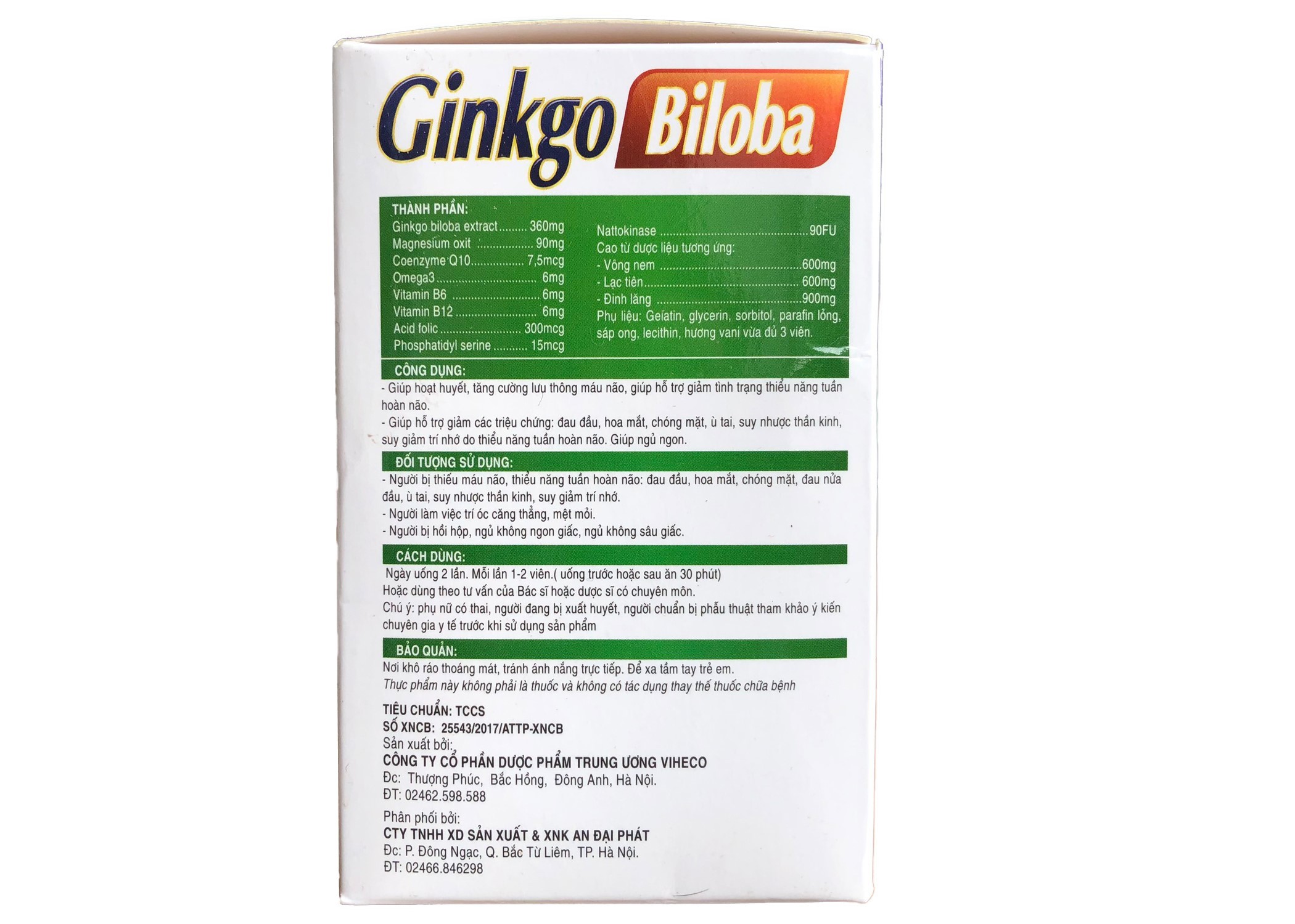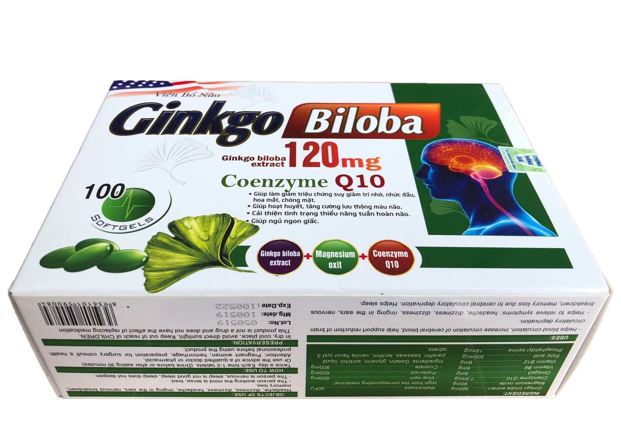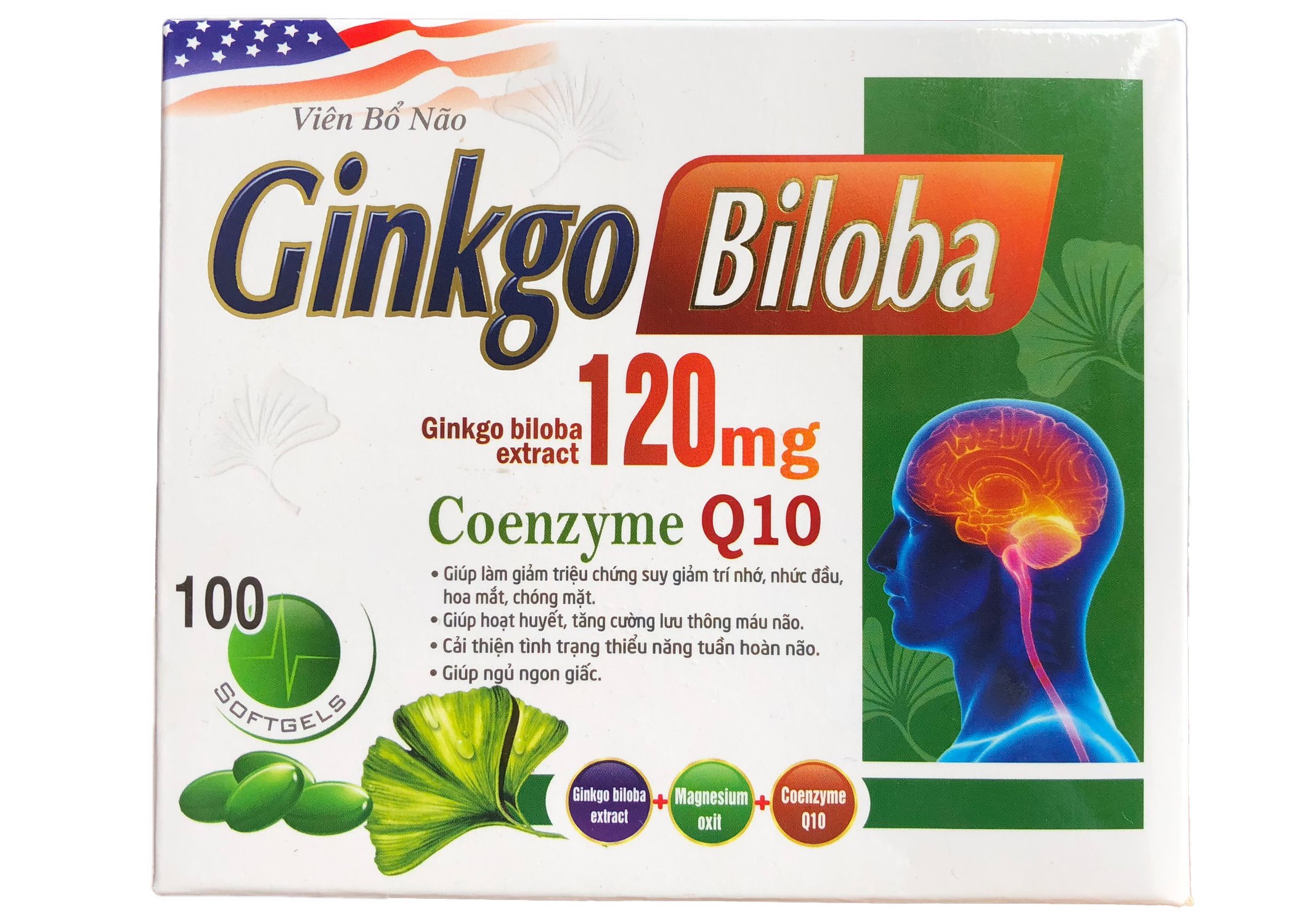 Viên Bổ Não Ginkgo Biloba Q10 hộp 100v