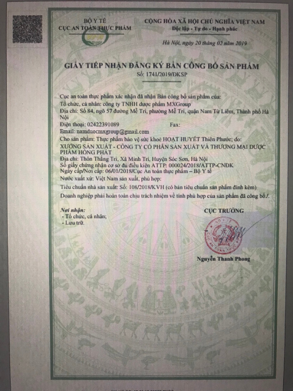 Thực phẩm bảo vệ sức khỏe Hoạt Huyết Thiên Phước hỗ trợ bổ máu, bổ huyết, hỗ trợ hoạt huyết, tăng cường tuần hoàn não, tiền đình, rối loạn giấc ngủ, ngủ không ngon giấc, hoa mắt chóng mặt.