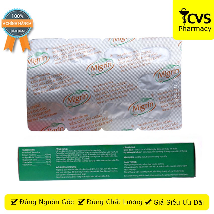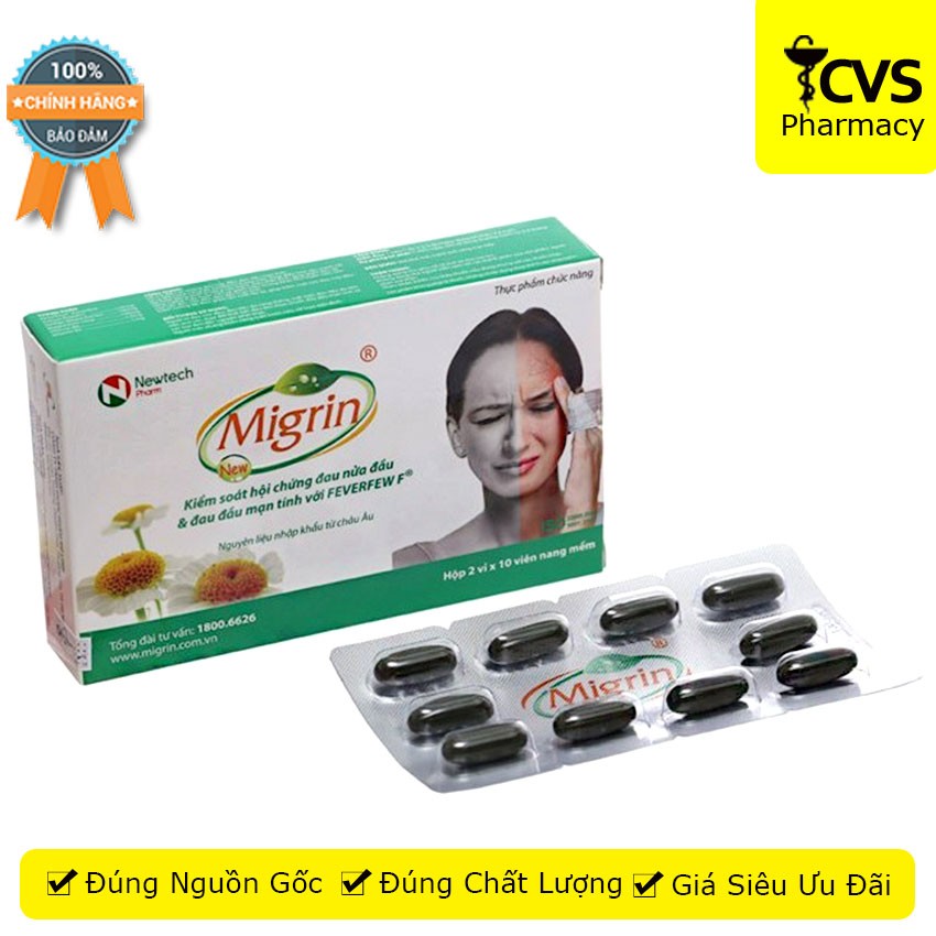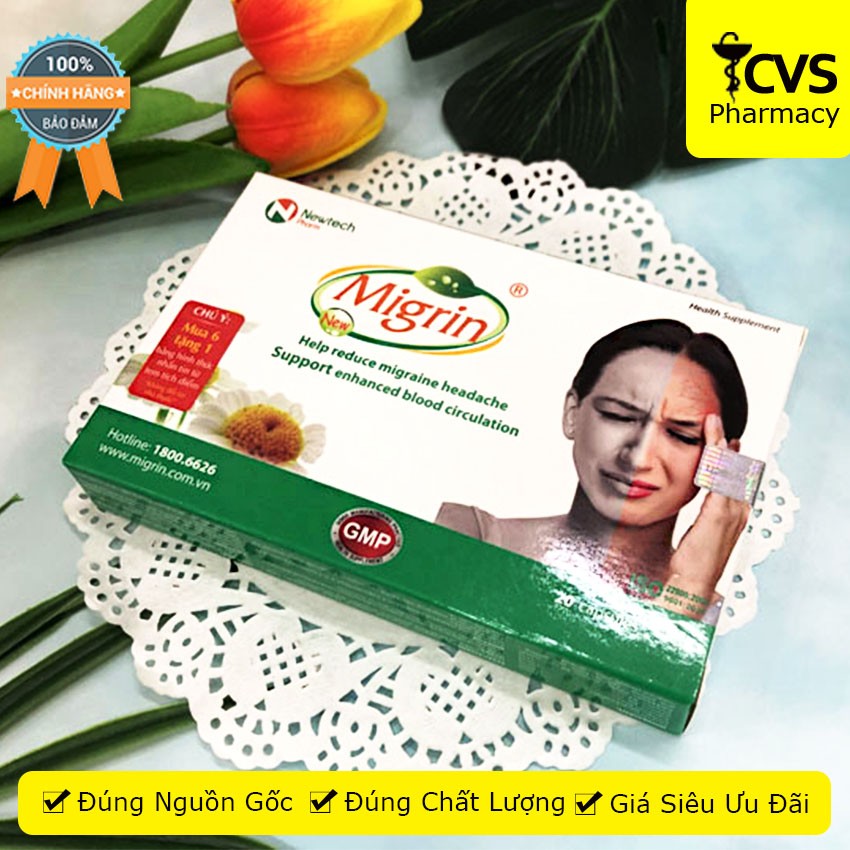 Viên uống Migrin New (20 viên) chiết xuất từ thảo dược thiên nhiên hỗ trợ giảm đau nữa đầu, thiếu máu não - cvspharmacy