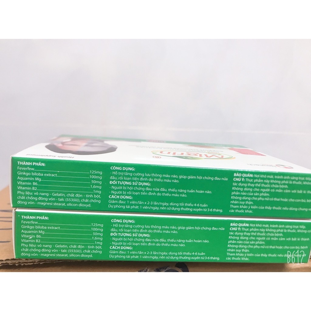 Viên uống Migrin New (20 viên) chiết xuất từ thảo dược thiên nhiên hỗ trợ giảm đau nữa đầu, thiếu máu nãoNhà sản x 165.000đ