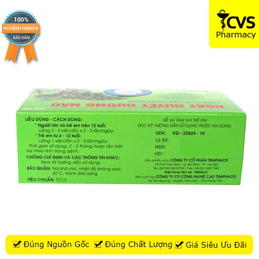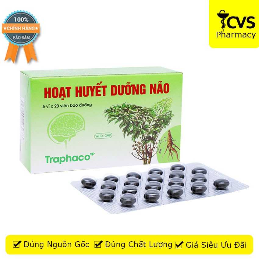 Hoạt Huyết Dưỡng Não Traphaco - Hộp 100 viên uống Giúp Bổ Khí Huyết, Tăng Cường Máu Lên Não - cvspharmacy