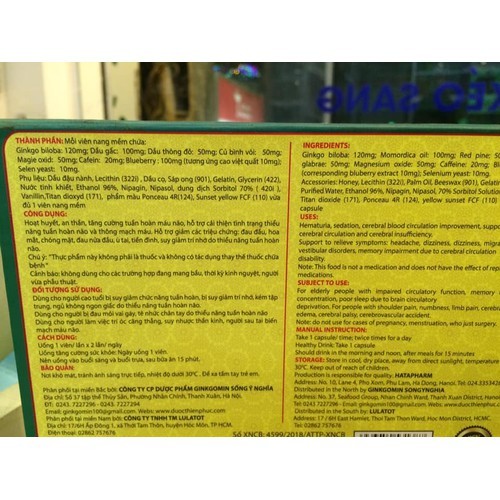🌳Thành phần:Ginkgo Biloba............ 120mgDầu gấc ......................100mgDầu thông đỏ .............50 mgCủ bình vôi .........