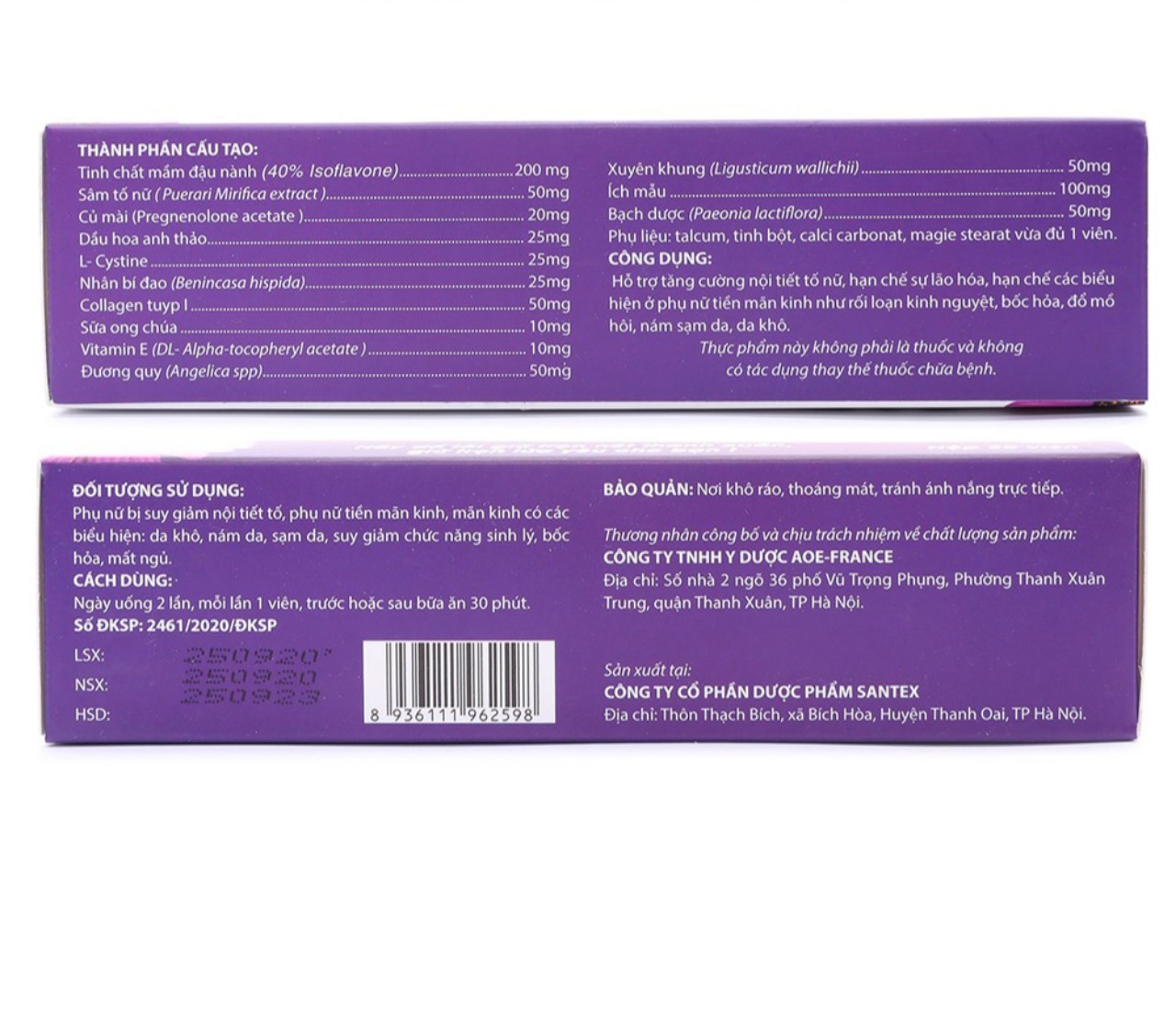- Thành phần: Collagen, vitamin E, tinh chất mầm đậu nành, dầu hoa anh thảo, cao ích mẫu, sâm tố nữ ...