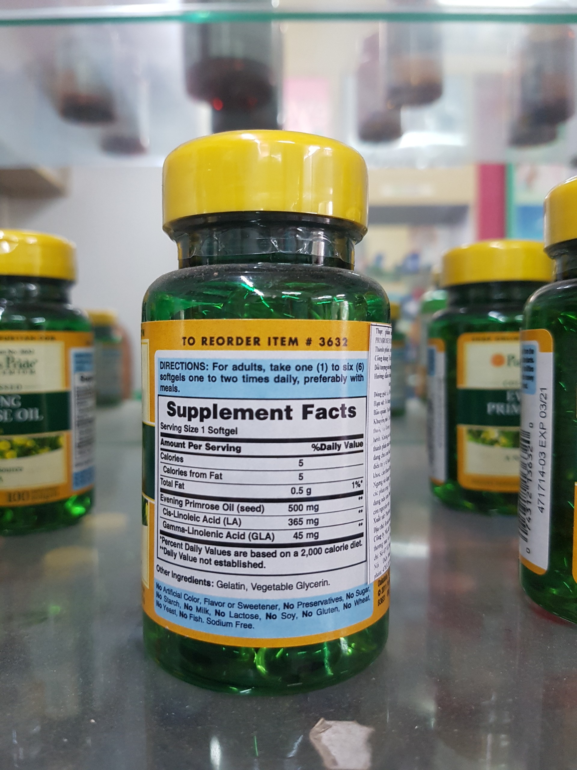 💐 Sản phẩm Tinh dầu hoa anh thảo (Evening Primrose Oil - EPO with GLA)củaPuritan’s Pridegiúp cân bằng hooc môn nữ giúp giảm các triệu chứng bệnh lý ở tuổi tiền mãn kinh, khó chịu thời kỳ tiền kinh nguyệt; cải thiện tình trạng của da, tóc, móng, mụn trứng cá. Ngoài ra tinh dầu hoa anh thảo còn có công dụng làm đẹp : giúp chuyển hoá mỡ và giảm cân