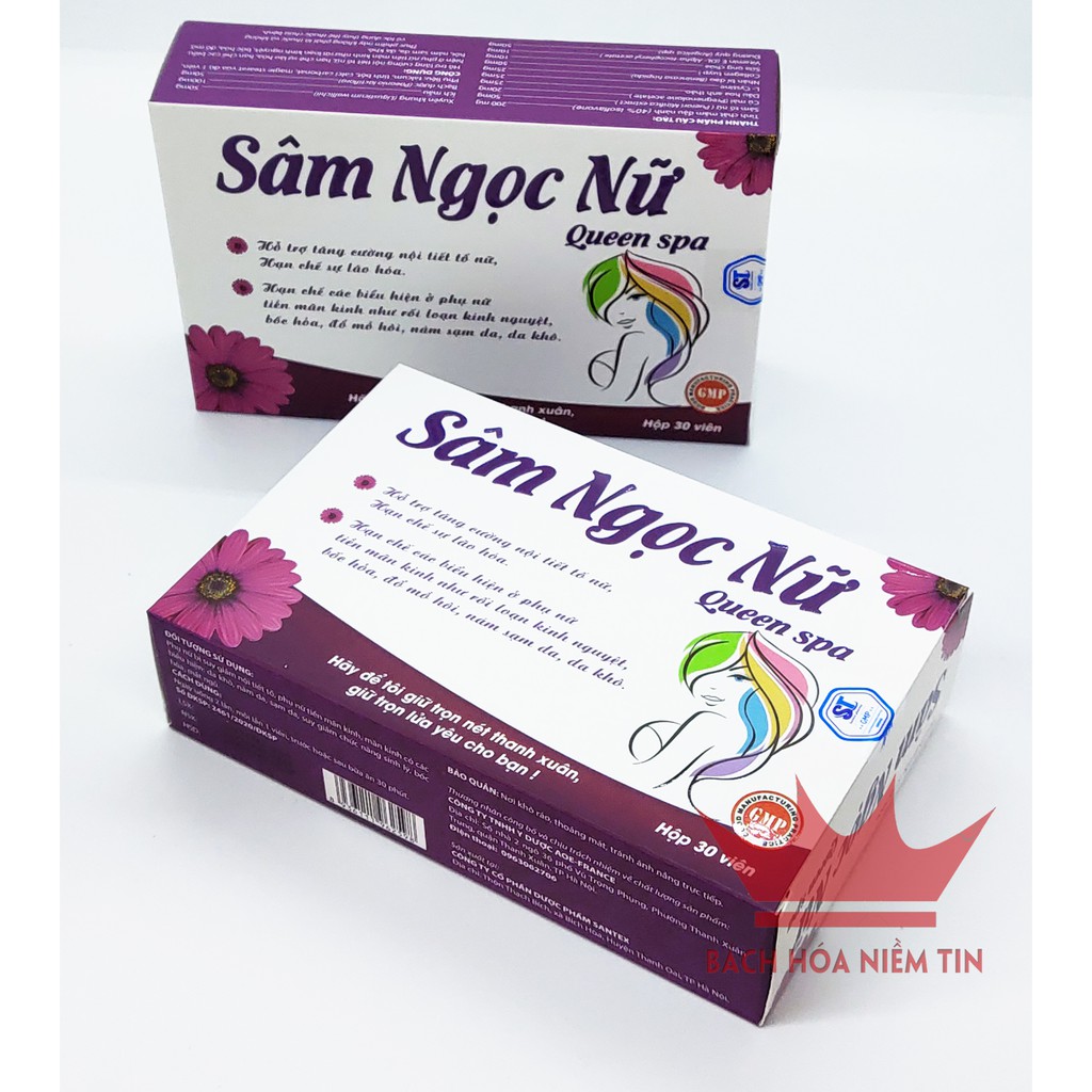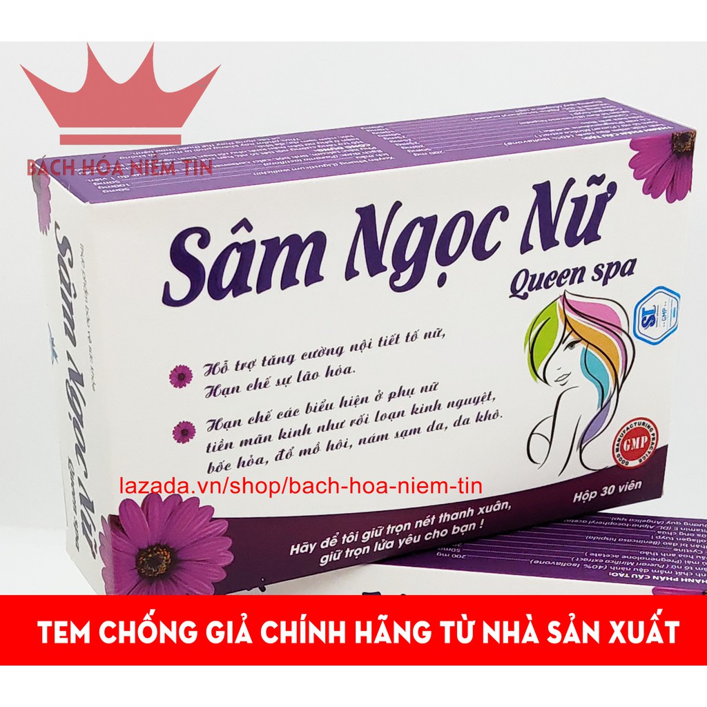 Shop cam kết bán hàng chính hãng Đóng gói cẩn thận, gửi date mới nhất đến tay quý khách hàng---Quy cách: Hộp 30 viênĐược Bộ Y Tế cấp phép sản xuấtSản xuất đạt chuẩn GMP Bộ Y TếThành phần: Collagen, vitamin E, tinh chất mầm đậu nành, dầu hoa anh thảo, cao ích mẫu, sâm tố nữ ...Hộp 30 viên nangDùng ngày 2 lần, mỗi lần 1 viên, uống trước hoặc sau ăn 30 phútTăng cường nội tiết tố nữ, chống lão hóa da và cơ thểGiảm rối toạn kinh nguyệtCải thiện nám da, sạm da, khô daMang đến làn da hồng hào, rạng rỡTăng cường ham muốn ở nữ giới, giảm khô hạnKéo dài thanh xuân cho chị emCÔNG DỤNG CỦA SÂM NGỌC NỮ- Hỗ trợ tăng cường nội tiết tố nữ- Hạn chế sự lão hóa do tuổi tác- Giảm rối loạn kinh nguyệt, giảm bốc hỏa, hay cau gắt- Giảm nám sạm da, giúp da hồng hào, sáng rạng rỡ- Giúp chị em giữ lửa tình yêu, lưu giữ thanh xuânHƯỚNG DẪN SỬ DỤNGNgày uống 2 lần, mỗi lần 1 viênUống trước hoặc sau ăn 30 phútSử dụng cho người trưởng thành trên 18 tuổi