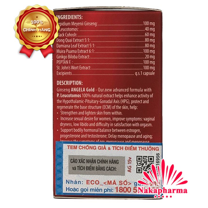 ❤ [TÍCH ĐIỂM TẶNG QUÀ] SÂM ANGELA GOLD 30V – GIÚP ĐẸP DA TÓC, TĂNG CƯỜNG SINH LÝ NỮ, XƯƠNG CHẮC KHỎE, GIẢM CHOLESTEROL 370.000đ