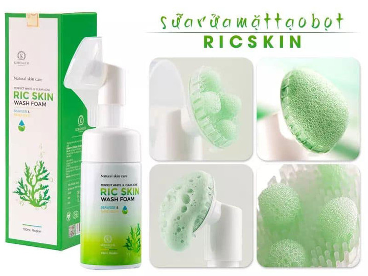- Sữa rửa mặt Ric Skin Wash Foam nhẹ nhàng đánh bật và loại bỏ các vết bẩn và tẩy trang.