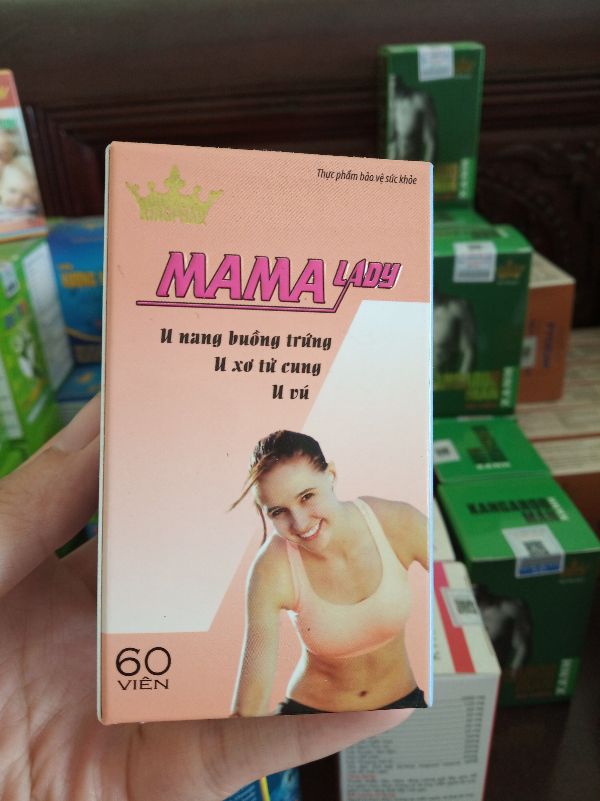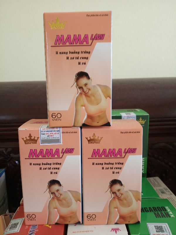 **********MAMA LADY - U NANG BUỒNG TRỨNG, U TỬ CUNG, U VÚ******Kế thừa những giá trị quý giá của Y học cổ truyền, kết hợp với công nghệ chiết tách hiện đại để đạt dược các hoạt chất có hoạt tính sinh học cao, công ty Kingphar Viêt Nam đã nghiên cứu và bào chế thành công sản phẩm Mama Lady với thành phần gồm 12 loại thảo dược hàng đầu thế giới. Sản phẩm có TÁC DỤNG phòng và hỗ trợ điều trị hiệu quả các bệnh ở nữ giới như: u xơ tử cung, u nang buồng trứng, ung thư cổ tử cung, u tuyến vú, nấm, viêm nhiễm phụ khoa và rối loạn kinh nguyệt.CÔNG DỤNG:- Giúp bổ huyết, thanh nhiệt, giải độc, tăng cường sức đề kháng cơ thể, giảm viêm nhiễm.- Giúp điều hòa khí huyết, tăng cường miễn dịch của cơ thể.- Hỗ trợ điều trị u tử cung, u buồng trứng, u vú.CÁCH DÙNG:Người lớn: uống 1viên/lần x 2 lần trong ngàyUống trước bữa ăn 1 giờMỗi đợt dùng từ 3-6 tháng để đạt kết quả tốt nhất