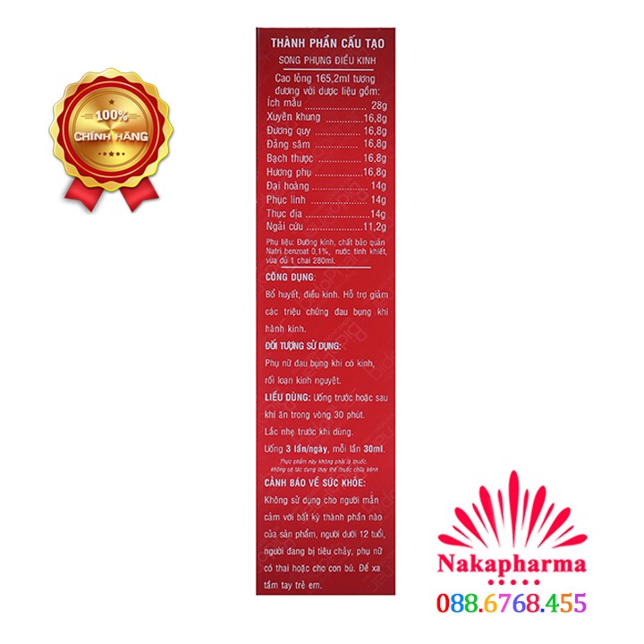 ❤ SONG PHỤNG ĐIỀU KINH - CHIẾT XUẤT TỪ CÁC DƯỢC LIỆU TỰ NHIÊN, DÀNH CHO PHỤ NỮ ĐAU BỤNG KHI CÓ KINH, RỐI LOẠN KINH