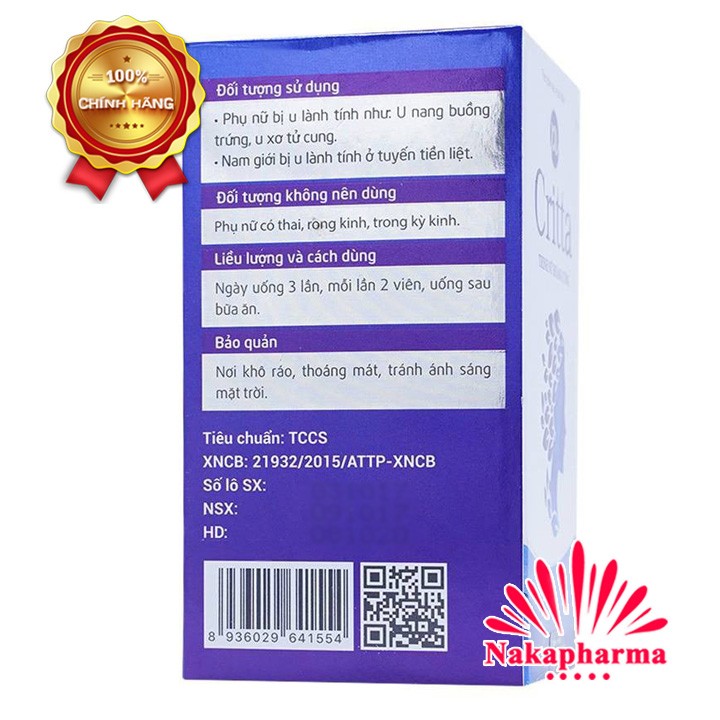 ❤ [CHÍNH HÃNG] CRITTA TRINH NỮ HOÀNG CUNG – NGỪA U NANG BUỒNG TRỨNG, U XƠ TỬ CUNG, RỐI LOẠN KINH NGUYỆT, UNG THƯ TUYẾN TI��