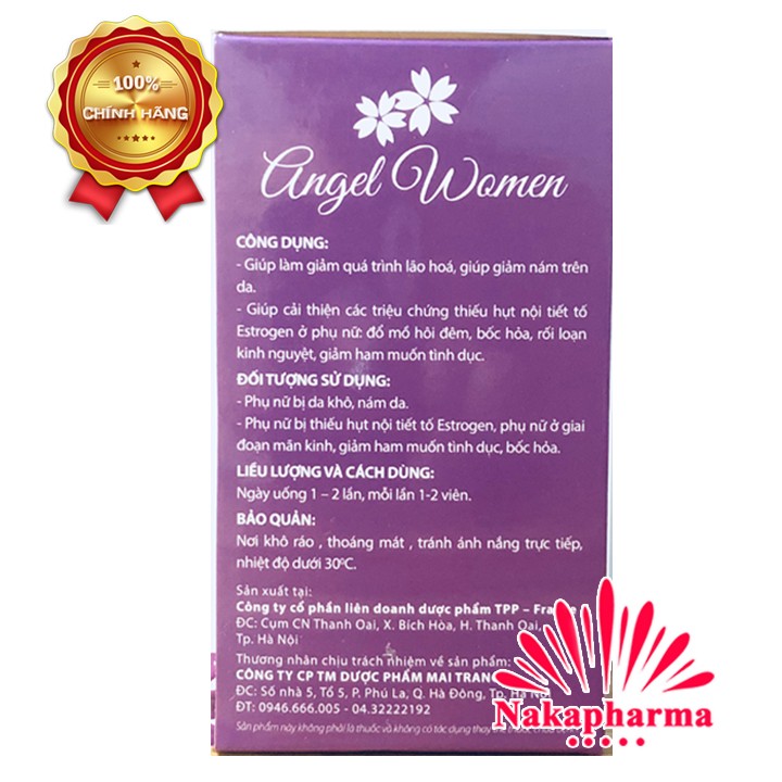 Angel Women giúp chậm lão hóa, giảm nám da, tăng Estrogen, cân bằng nội tiết tố nữ