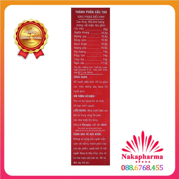 ❤ SONG PHỤNG ĐIỀU KINH - CHIẾT XUẤT TỪ CÁC DƯỢC LIỆU TỰ NHIÊN, DÀNH CHO PHỤ NỮ ĐAU BỤNG KHI CÓ KINH, RỐI LOẠN KI