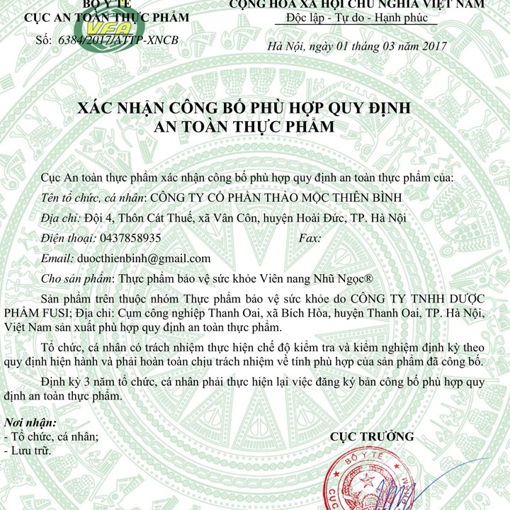 - Thương nhân chịu trách nhiệm: Công ty Cổ phần Thảo Mộc Thiên Bình