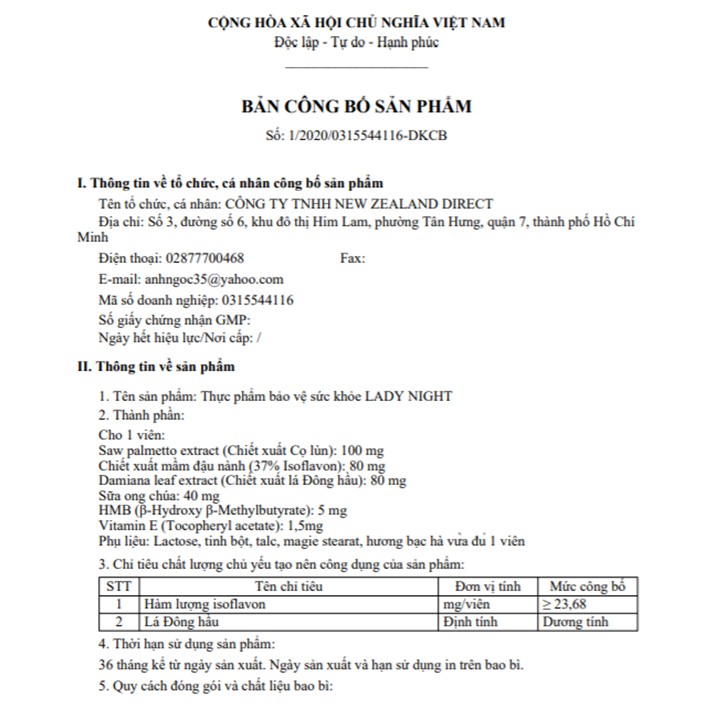 Thành phầnChiết xuất cọ lùn: 100mgChiết xuất mầm đậu nành: 80mgChiết xuất lá đông hàu: 80mgSữa ong chúa: 300.000đ