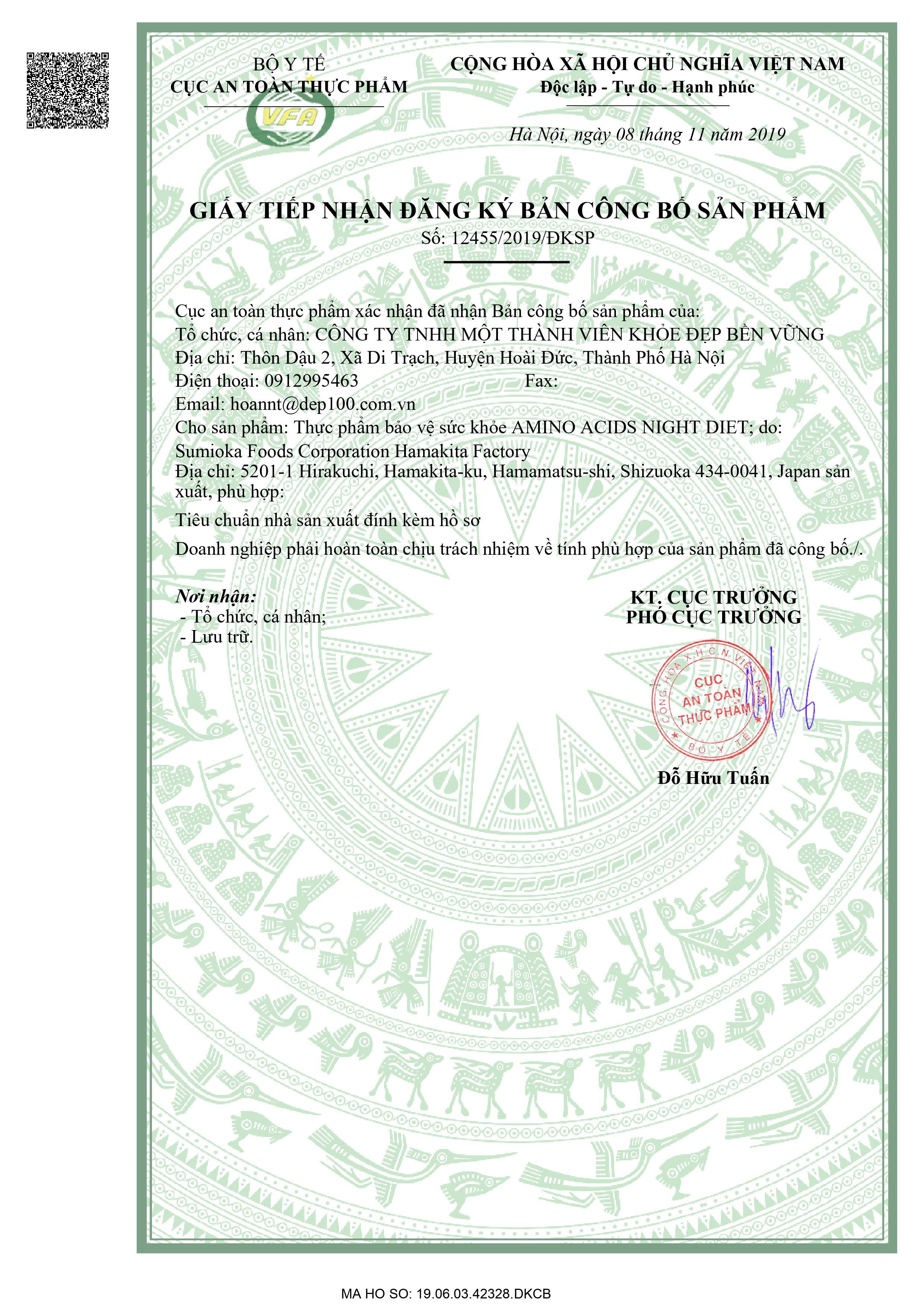 Bộ sản phẩm hỗ trợ giảm cân, làm đẹp da và chống lão hóa 1. Thông tin về sản phẩm:- Hãng sản xuất: - Xuất xứ: Nhật Bản- Quy cách : Viên giảm cân - Dạng viên, 60 gói/ 1 hộp, 6 viên/1 gói, 90gCollagen đẹp da chống lão hóa : - Dạng bột, 30 viên- Hạn sử dụng: 36 tháng kể từ ngày sản xuất2. g dụng:Bộ sản phẩm hỗ trợ giảm cân, làm đẹp da và chống lão hóa - Tiêu mỡ lâu năm tích tụ ở bụng, đùi, bắp tay, bắp chân,- Thúc đẩy chuyển hóa, giải phóng năng lượng ngay lúc bạn ngủ, giúp tiêu hao lượng chất béo dư thừa sau mỗi bữa ăn.- Viên giảm cân thúc đẩy giải phóng năng lượng tối đa trong mỗi lúc vận động, tập luyện.- Giúp giảm cân hiệu quả, mang lại vóc dáng thon gọn như mong ước một cách an toàn, không tổn hại đến sức khỏe, không làm mất nước, hỗ trợ tiêu hóa.- Giảm cân bổ sung một số dưỡng chất cần thiết giúp bạn khỏe mạnh, không bị mệt mỏi trong quá trình ăn kiêng.- An thần, giúp bạn ngủ ngon giấc, hỗ trợ làm đẹp da, giúp da tươi trẻ, căng mịn.- Sử dụng viên uống giảm cân Night Diet của Nhật Bản kết hợp với chế độ tập luyện và ăn uống hợp lý sẽ giúp bạn tìm lại vóc dáng cách nhanh chóng, an toàn- Bổ sung hàm lượng collagen cho da.- Làm lành nhanh chóng các tổn thương trên da, khắc phục tình trạng sẹo rỗ, cho làn da láng mịn và khỏe mạnh hơn.- Làn da đẹp rạng rỡ mịn màng với thành phần cấp ẩm tuyệt vời từ bên trong AXIT HYALURONIC Bổ sung hàm lượng collagen cho da.- Chống lão hóa da hàng đầu Chiết xuất nhau thai heo.- Giảm các vết thâm m và tàn nhang nhờ cơ chế ngăn chặn sự hình thành sắc tố melanin yếu tố quyết định màu da, giúp da trắng sáng rạng rỡ.3. Đối tượng sử dụng: - Dùng cho tất cả các đối tượng - Không dùng cho trẻ em dưới 18 tuổi4. Thành phần :- Viên giảm cân : Axit amin (arginine, ornithine, lysine), Vitamin B1, Vitamin B6, Axit pantothenic- Collagen đẹp da chống lão hóa : Axit hyaluronic trọng lượng phân tử thấp, bột chiết xuất nhau thai (tương đương nhau thai 700mg), Collagen peptideSo với axit hyaluronic nói chung, Viên Collagen cấp nước chứa axit hyaluronic trọng lượng phân tử thấp, nhau thai hữu ích cho việc làm đẹp và collagen đậm đặc chứa gấp 30 lần PO và OG (prolyl hydroxyproline, hydroxypropyl glycine) các dipeptide đặc hiệu của collagen so với collagen bình thường.5. Hướng dẫn sử dụng: Viên giảm cân : - Sản phẩm gồm có 60 gói, mỗi gói 6 viên, dùng trong vòng 30 ngày.- Sử dụng mỗi ngày 2 gói, uống với nước ấm hoặc lạnh.- Nên uống trước lúc tập luyện, lúc nghỉ ngơi hoặc trước khi đi ngủ.- Sử dụng đều đặn hàng ngày để đạt hiệu quả cao nhất.Collagen đẹp da chống lão hóa: - Uống 1 viên/ngày cùng nước ấm. Sau khi vừa ăn xong.- Khuyến cáo nên sử dụng vào khoảng 9h -10h sáng để có hiệu quả tốt .- Không uống quá liều lượng mỗi ngàySản phẩm không phải là thuốc, không có tác dụng thay thế thuốc (Bảo quản sản phẩm nơi khô ráo, thoáng mát, tránh ánh nắng trực tiếp)#giảmcân #giamcan #NhậtBản #NhatBan # #tpcn #thựcphẩmchứcnăng #ngon #ngủngon #depda #đẹpda#collagencấpnước #collagencapnuoc #chốnglãohóa #chonglaohoa #dasănchắc #dasanchac #NhậtBản #NhatBan # #tpcn #thựcphẩmchứcnăng