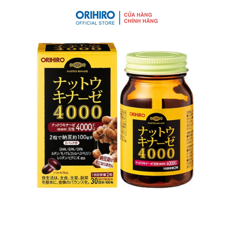 Viên uống hỗ trợ đột quỵ 4000 FU 60 viên1. Thông tin chi tiết sản phẩm- Nhà sản xuất: - Xuất xứ: Nhật Bản- Quy cách đóng gói: Dạng viên nang, 60 viên/ hộp- Hạn sử dụng: 36 tháng ( kể từ ngày sản xuất )2. g dụng:- DHA và EPA: Là những dưỡng chất rất quan trọng đối với não bộ và hệ thần kinh, được lấy từ sụn cá mòi. Nhờ bổ sung DHA và EPA sẽ giúp tăng cường lưu thông máu lên não, tránh tắc nghẽn mạch máu não, giúp não bộ hoạt động hiệu quả, ngăn ngừa đột quỵ não và giúp hệ thần kinh được thư giãn, bớt căng thẳng, mệt mỏi.- Hesperidin và rutin: Hỗ trợ tăng cường lưu thông máu, vận chuyển các dưỡng chất từ máu đến các bộ phận khác trong cơ thể một cách hiệu quả hơn.- Vitamin E: Thành phần chống lão hóa hiệu quả, ngăn ngừa sự oxy hóa chất béo và cholesterol trong máu, giúp mạch máu thông thoáng hơn.- Lecithin: Hỗ trợ chuyển hóa lipid trong máu, ngăn chặn sự hình thành cholesterol gây ra máu nhiễm mỡ- Ngăn ngừa sự hình thành cục máu g, làm tan cục máu g, thúc đẩy lưu thông máu lên não- Phòng ngừa tắc nghẽn mạch máu não gây bệnh tai biến, đột quỵ- Hỗ trợ những biến chứng do bệnh tai biến, đột quỵ gây ra- Tăng cường các dưỡng chất để bổ não, giúp hệ thần kinh hoạt động hiệu quả- Chống lão hóa, tăng cường sức khỏe, sức đề kháng và hệ miễn dịch cho cơ thể- Loại bỏ mỡ trong máu, giúp mạch máu trở nên thông thoáng hơn.- Cải thiện tình trạng suy giảm trí nhớ3. Thành phần:- Chiết xuất nuôi cấy Bacillus natto (hoạt tính nattokinase 4000 FU), DHA, EPA, DPA, Rutin, Hesperidin, Lecithin, Vitamin E.4. Hướng dẫn sử dụng:- Uống 2 viên/ ngày với nước ấm. Nên uống nhiều nước.Sản phẩm không phải là thuốc, không có tác dụng thay thế thuốc (Bảo quản sản phẩm nơi khô ráo, thoáng mát, tránh ánh nắng trực tiếp)#dotquy #độtquỵ #stress #luuthongmau #lưuthôngmáu #chonglaohoa #chốnglãohóa #suygiamtrinho #suygiảmtrínhớ #nhậtbản #nhatban #tpcn #thựcphẩmchứcnăng