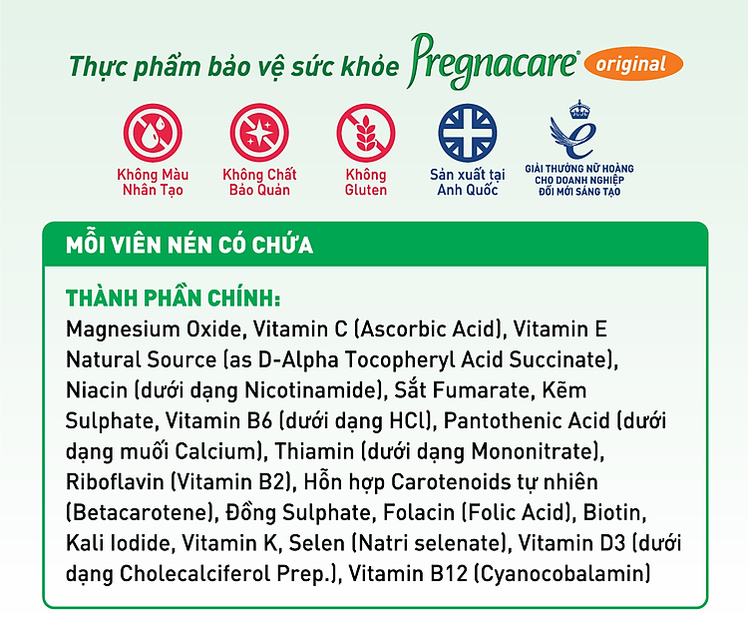 Thực phẩm bảo vệ sức khỏe PREGNACARE Original – Hỗ trợ Tăng cường sức khỏe cho Phụ nữ mang thai & cho con bú - HÀNG CHÍNH HÃNG - CÓ TEM CHÍNH HÃNG - Hộp 30 viên - KÈM QUÀ TẶNG