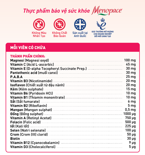 - Bổ sung 22 Vitamin & Khoáng chất cho phụ nữ tiền mãn kinh, mãn kinh