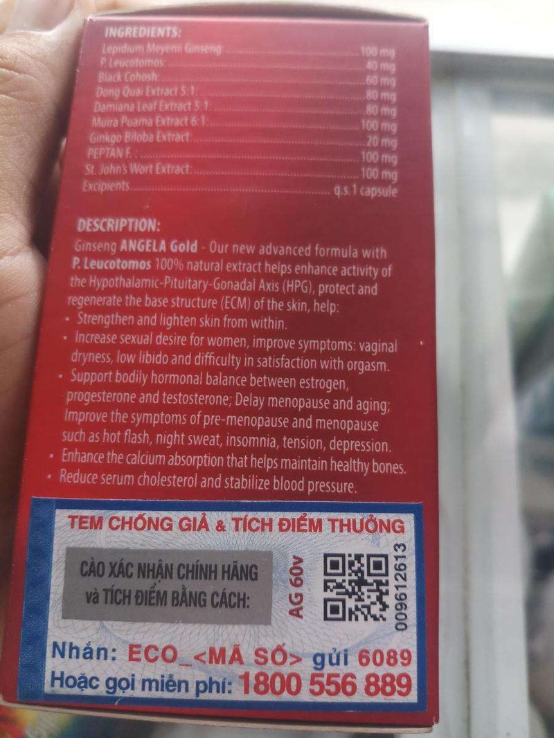Sâm ANGELA GOLD Sức Khoẻ - Sắc Đẹp - Sinh Lý Nữ - Nguyên Tem Cào Chính Hãng (Chai 60 viên)
