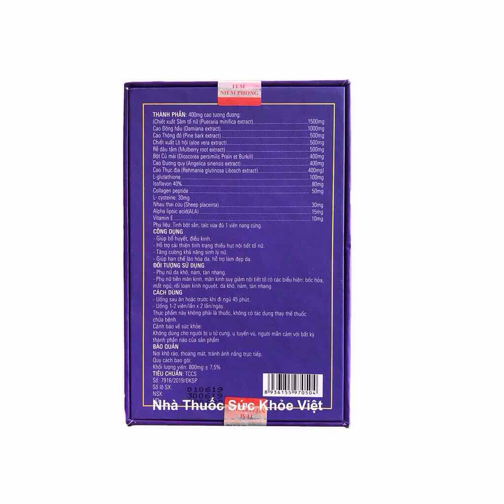 - Hỗ trợ cải thiện tình trạng thiếu hụt nội tiết tố nữ, tăng cường khả năng sinh lý nữ, giúp hạn chế lão hóa, hỗ trợ làm đẹp da.