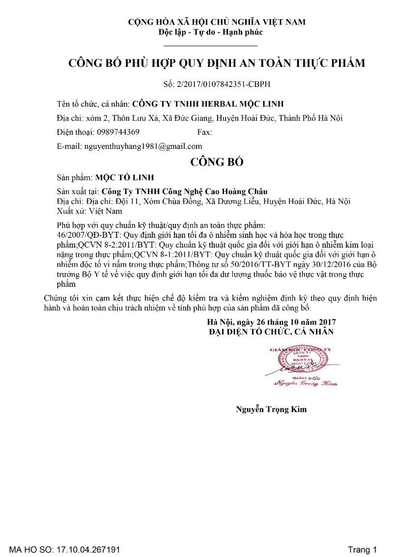 ♦ Mộc Tố Linh là sản phẩm được tư vấn bởi Viện Hoá học, Viện Hàn Lâm KH&CN Việt Nam.