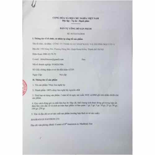 Thành phần: Nhụy hoa nghệ tây nguyên chất / Nhụy hoa nghệ tây chính hãng