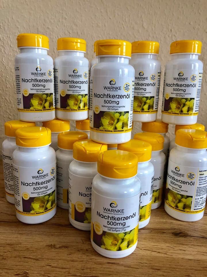 TINH DẦU HOA ANH THẢO Nachtkerzenöl 500 mg của Warnke 100 viên hộp nắp vàng (Giúp duy trì và điều hoà nội tiết tố nữ) - HÀNG ĐỨC