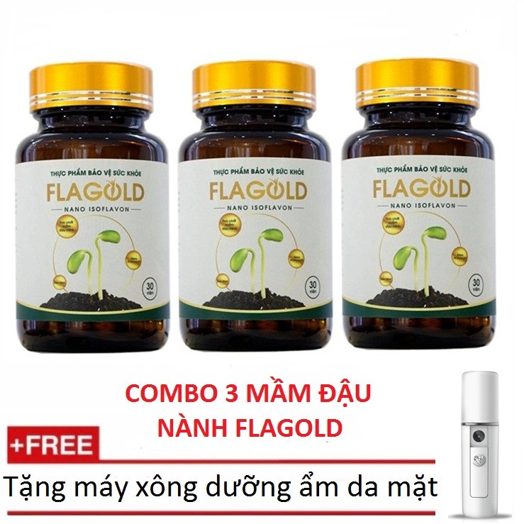 Combo 3 mầm đậu nành FlaGold Tặng máy xông nano dưỡng ẩm da mặt