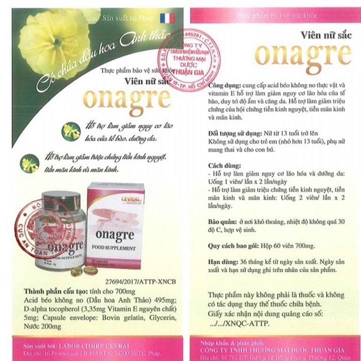 Quy cách Viên Nữ Sắc Onagre:Hộp lọ 60 viên