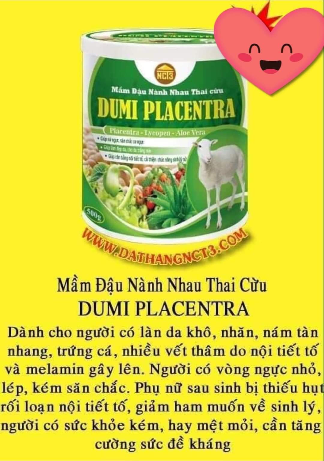 MẦM ĐẬU NÀNH NHAU THAI CỪUSản phẩm dành cho: 👉Người có làn da khô, xấu, nhăn, nám, tàn nhang, trứng cá, nhiều vết thâm đen do nội tiết tố và melamin gây nên👉Người có vòng ngực nhỏ lép, kém săn chắc, phụ nữ sau sinh bị thiếu hụt, rối loạn nội tiết tố, giảm ham muốn về sinh lý👉Phụ nữ trong giai đoạn tiền mãn kinh và mãn kinh, bị bốc hoả, rụng tóc, nám má hay đổ mồ hôi về ban đêm, khô rát âm đạo👉Người có sức khoẻ kém hay mệt mỏi, cần tăng cường sức khoẻ, nâng cao hệ miễn dịch👉Độ tuổi ngoài 30 da sẻ bắt đầu lão hóa do thiếu nội tiết tố. để có làn da đẹp nên bổ sung ngay từ bây giờ phụ nữ nhé👉sản phẩm có giấy phép kiểm nghiệm của bộ y tế#nct3group#sanphamnct3#chinhsachnct3#congtycophandautuquoctenct3