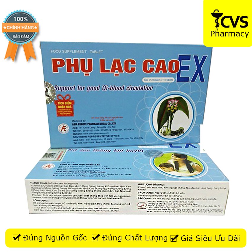 Phụ Lạc Cao EX - Hộp 30 viên uống Hỗ trợ giảm đau bụng kinh, bế kinh và kinh nguyệt không đều - cvspharmacy