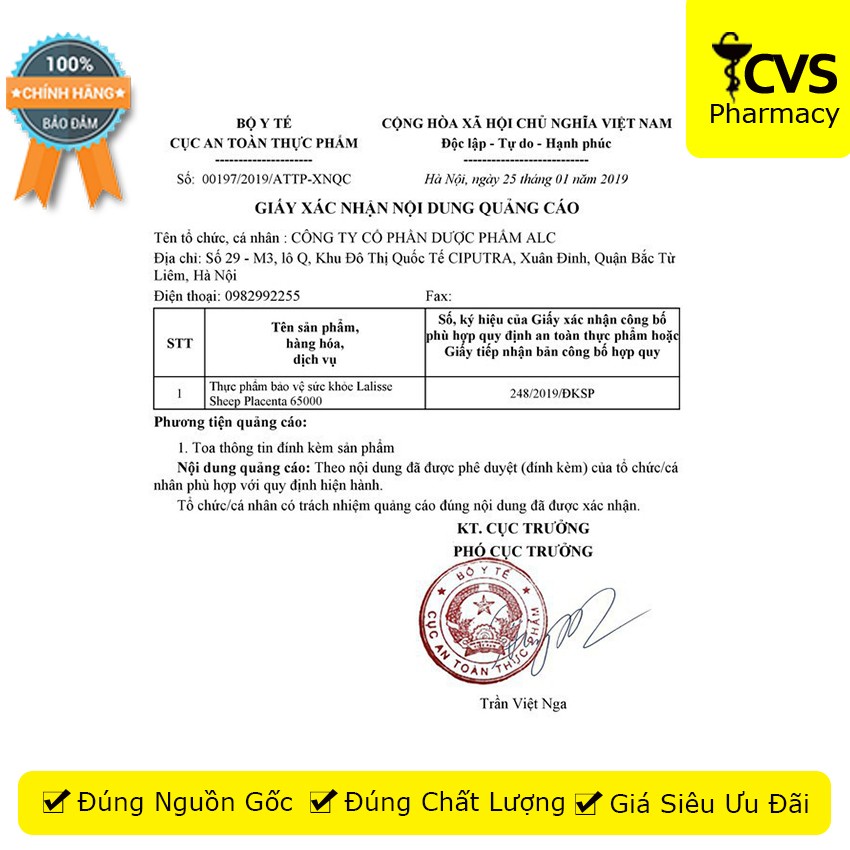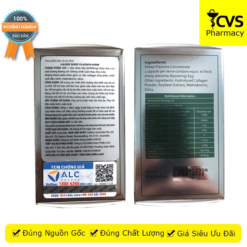 Lalisse Sheep Placenta 65000 - Viên uống nhau thai cừu đẹp da, cân bằng nội tiết tố Quy cách đóng gói: Lọ 100 viên Lọ 30 490.000đ