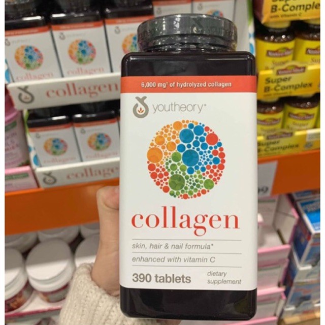 Viên uống bổ sung Collagen Youtheory Collagen skin, hair & nail formula Type 1,2,3 - Chai 390 viên Mẫu Mới