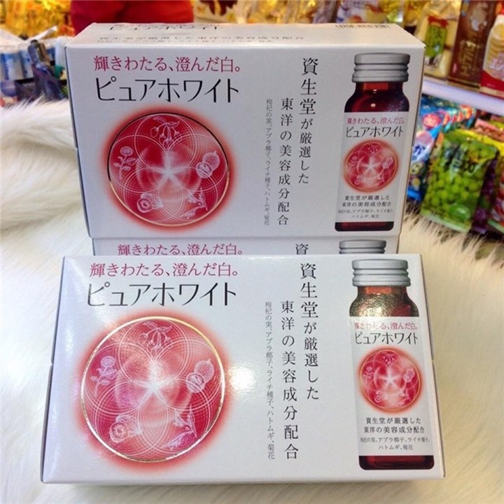 Nước uống trắng da Collagen Pure White dạng nước là một dạng thực phẩm chức năng của dòng Collagen - một trong những sản phẩm được yêu thích nhất tại thị trường Nhật Bản và Việt Nam. Tác dụng giúp săn chắc làn da, trắng sáng, không bị mụn đặc biệt là giúp xoá tan những nếp nhăn do sự lão hoá.