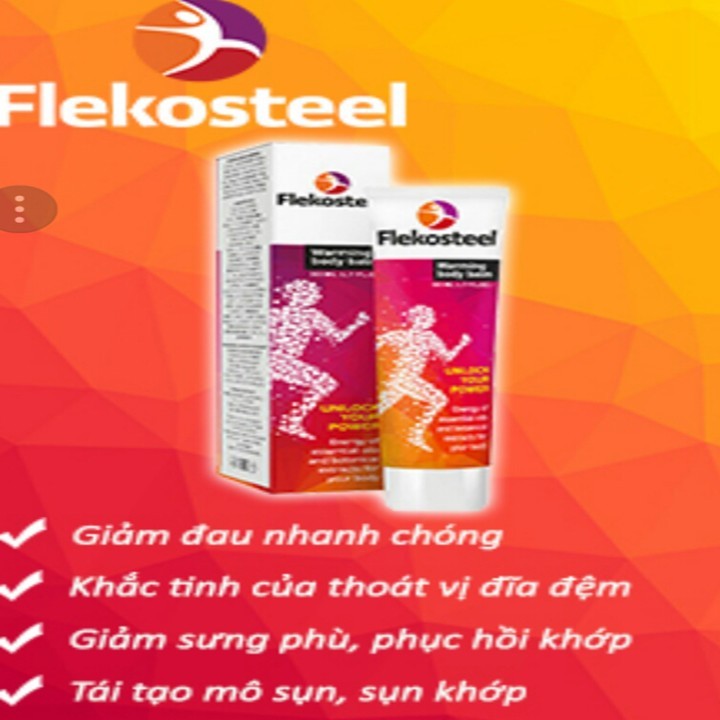 Flekosteel là một loại kem sinh nhiệt giúp điều trị các cơn đau về thoái hóa đĩa đệm, giảm đau viêm và chấn thương khớp hiệu quả nhất hiện nay. Với công dụng tức thì vào các vùng cơn đau gây ra, Flekosteel giúp giảm đau nhanh chóng