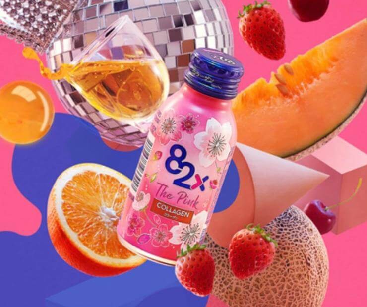 Nước uống 82x The Pink Collagen bổ sung collagen phân tử siêu nhỏ cùng các vi dưỡng chất tốt cho da, giúp giữ ẩm, tăng độ đàn hồi và trẻ hóa da.