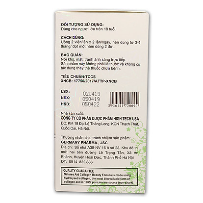 Nguyên phụ liệu: Gelatin, Magnesium Stearate, Corn Starch vừa đủ 1 viên.