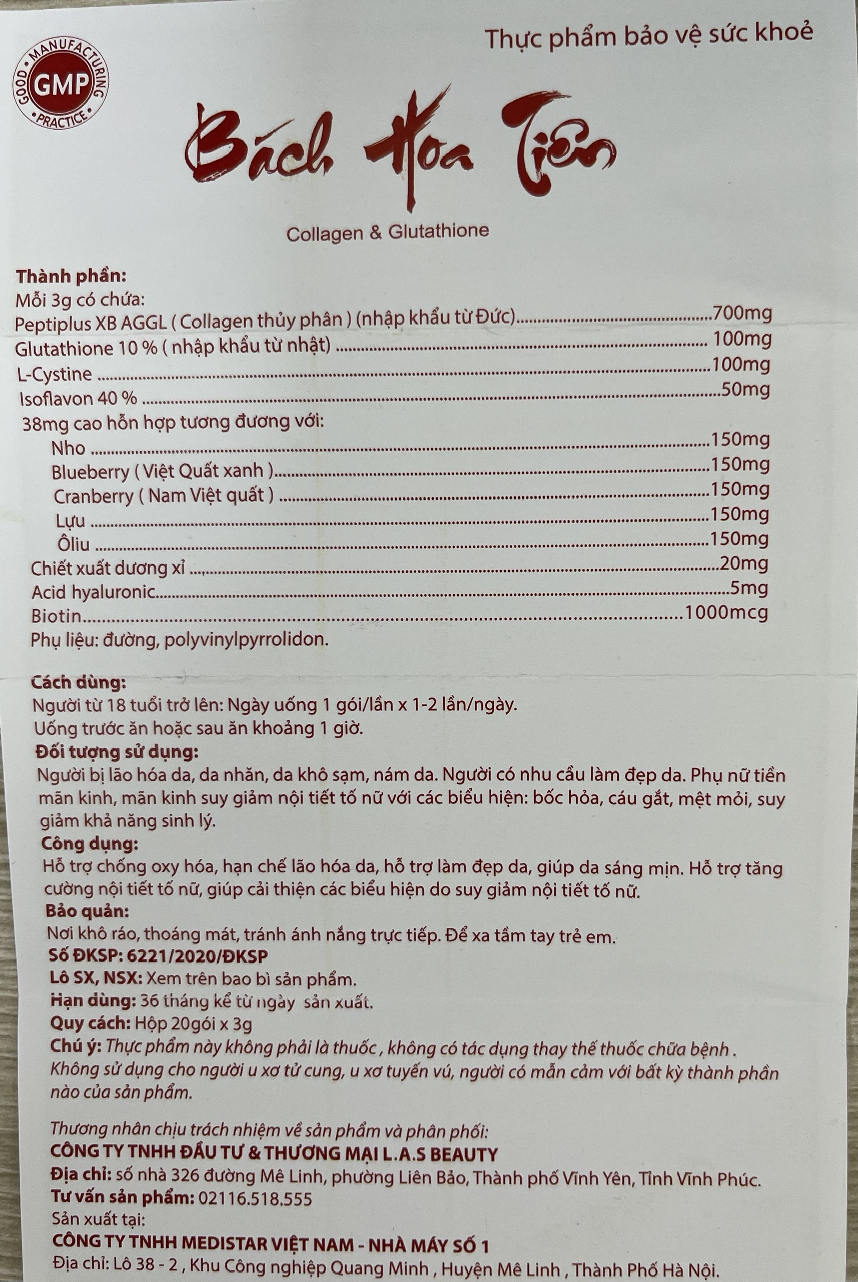 [Chính Hãng] bách hoa tiên Las beauty collagen uống đẹp da hộp 20 gói