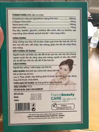 Mỗi viên có chứa Glutathione - reduced ( glutathion dạng khử hóa ) ... … ... .400mg