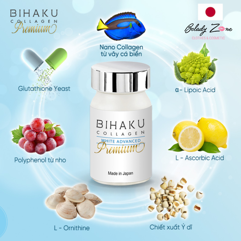 VIÊN UỐNG TRẮNG DA BIHAKU COLLAGEN PREMIUM NHẬT BẢN 30 VIÊN