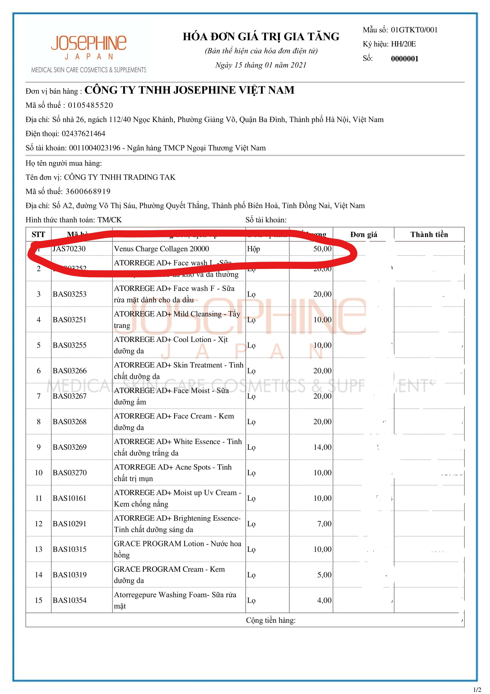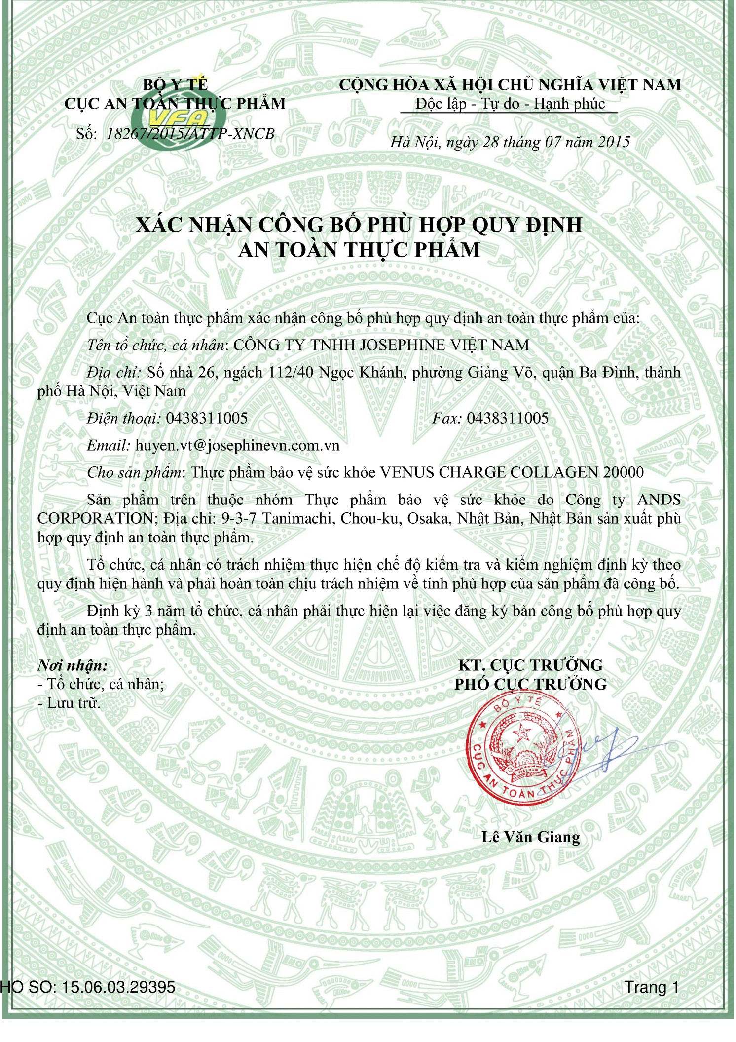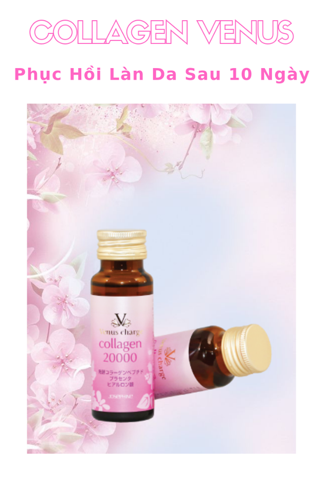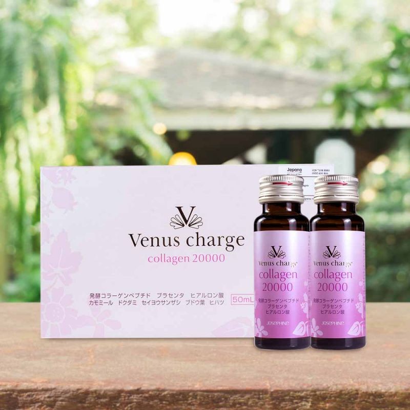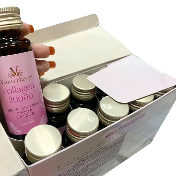 Venus Charge Collagen 20.000mg - Giúp mang lại làn da căng mịn màng, trẻ trung và tươi sángThức uống Venus Charge Collagen của Nhật được sản xuất bởi thương hiệu Josephine – Nhãn hiệu hàng đầu của Nhật bản là sản phẩm bổ sung Collagen chứa 20.000mg, thức uống chứa hàm lượng Collagen cao nhất hiện nay mà chưa có sản phẩm nào có được. Các phân tự Collagen được phân chia nhỏ, dễ dàng hấp thu vào cơ thể và lắp đầy sự thiếu hụt lượng collagen do sự lão hóa do tuổi tác, từ đó làn da sẽ được cải thiện, săn chắc hơn, đàn hồi. Venus Charge Collagen – bổ sung collagen là sự kết hợp từ chiết xuất thảo dược tự nhiên như hoa cúc roman, diếp cá, cây sơn trà, lá nho giúp bảo vệ da khỏi các tác nhân của bên ngoài môi trường, lưu giữ nét trẻ trung, tươi sáng dần cho làn da, những vết sạm da sẽ dần được phục hồi nhanh chóng.